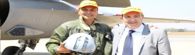 Eric Trappier, Chairman, Dassault Aviation and Anil Ambani, Chairman, Reliance Group at Aero India 2017 after the announcement of incorporation of new joint venture