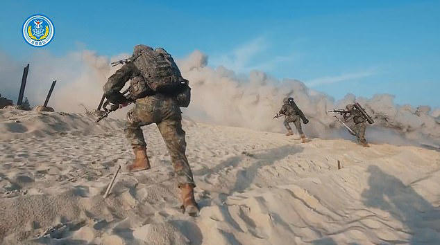 The PLA's Eastern Theatre Command published the clip, which features a montage of soldiers storming beaches and driving tanks on dirt roads to a country-style Chinese ballad, on WeChat yesterday © Provided by Daily Mail